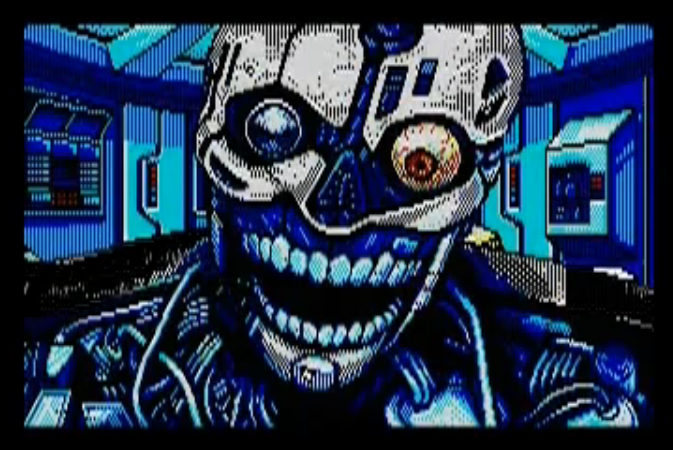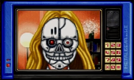 Then we have the English Sega CD version where they decided that the SNatcher design was too derivitive of the Terminator Endoskeleton design and added green panels to various sections and made the eyes glow GREEN.