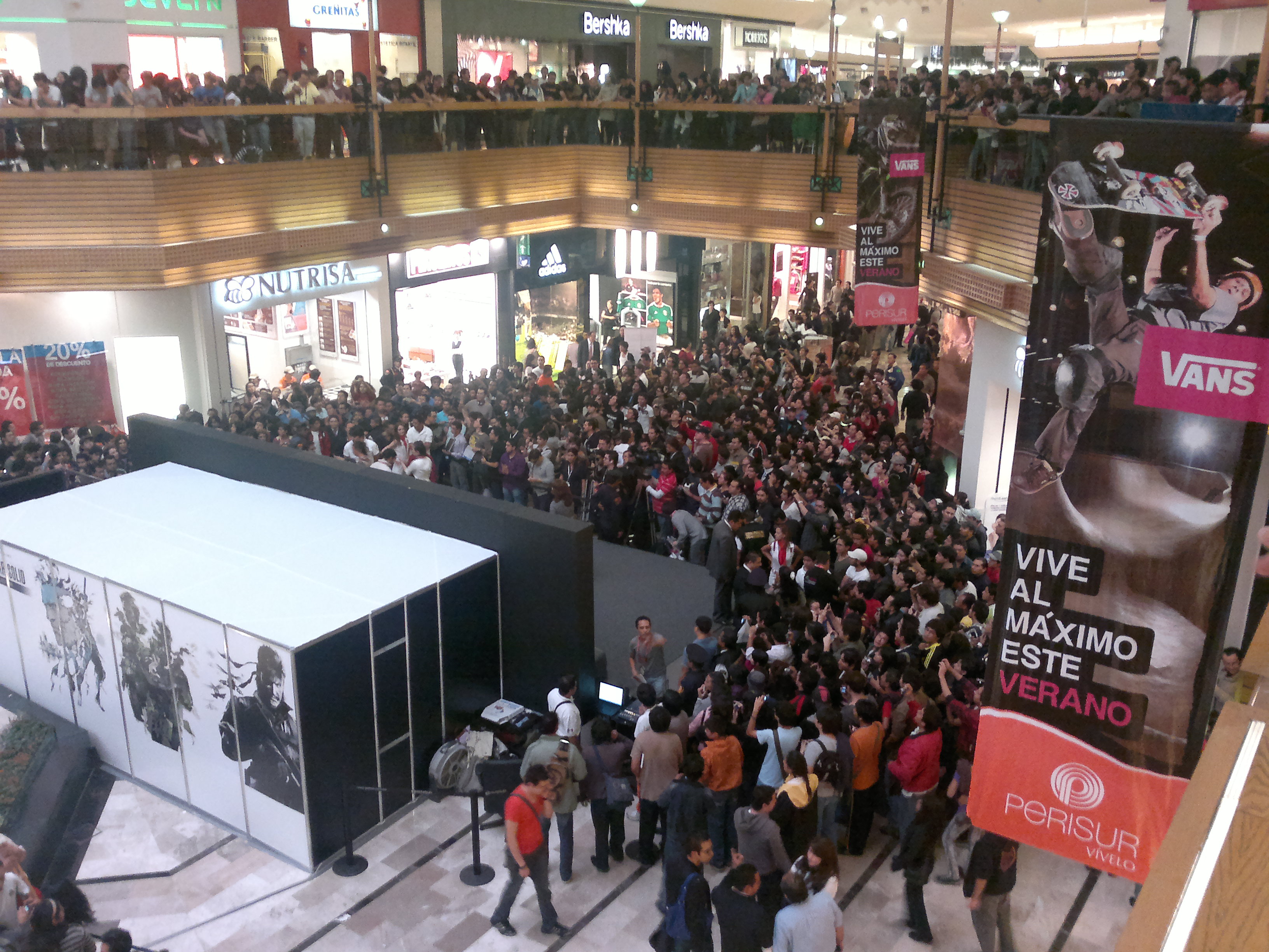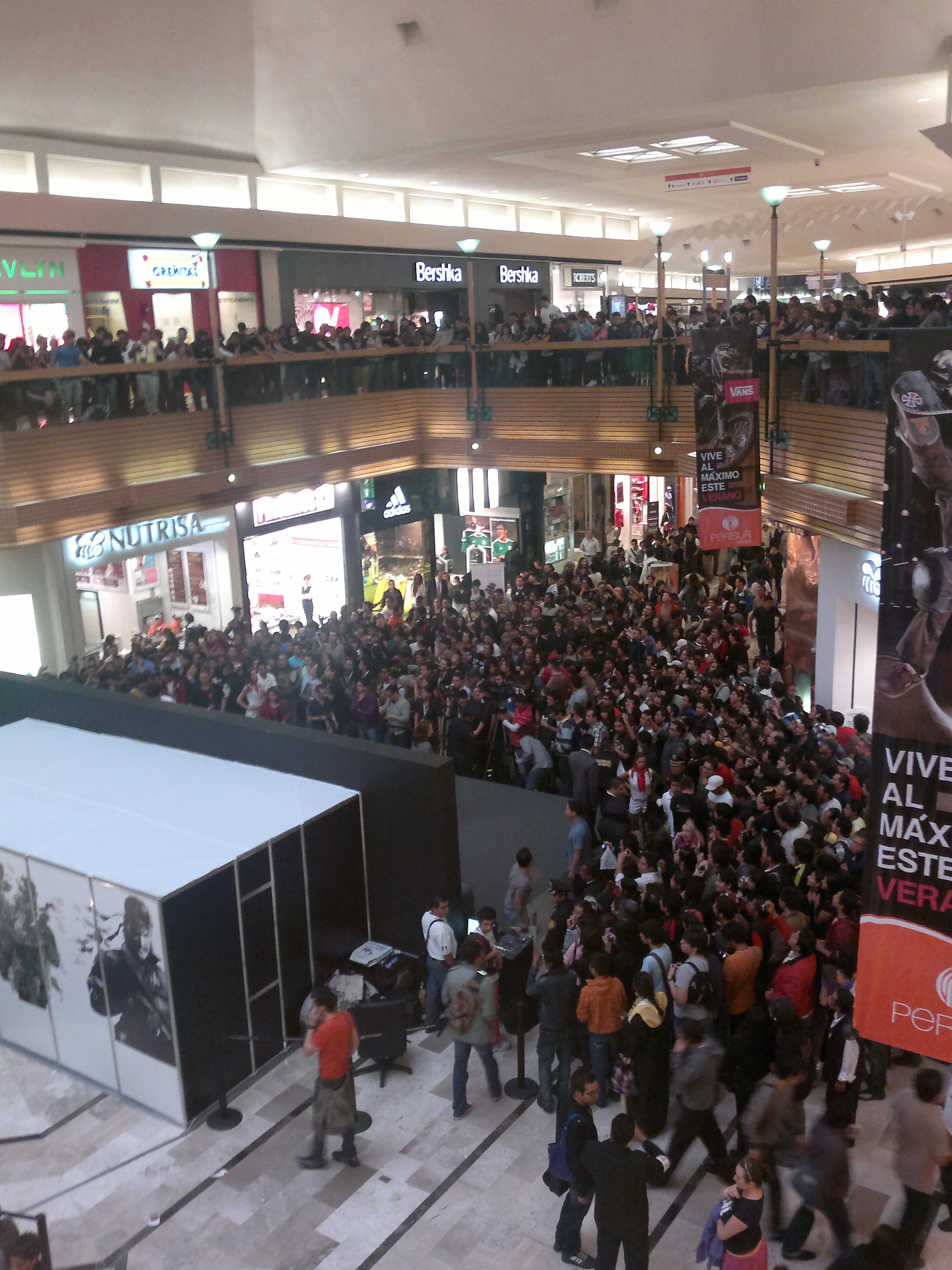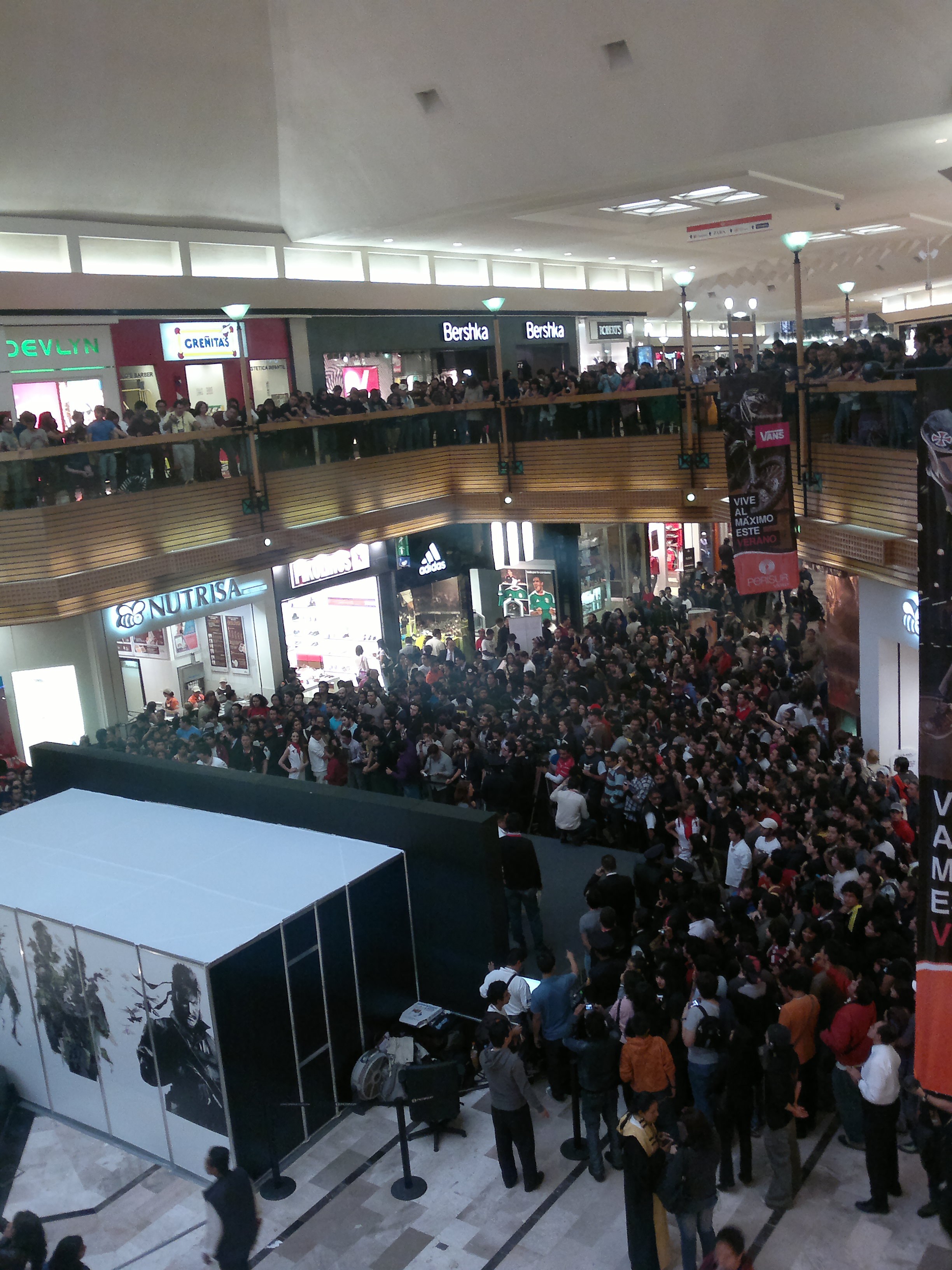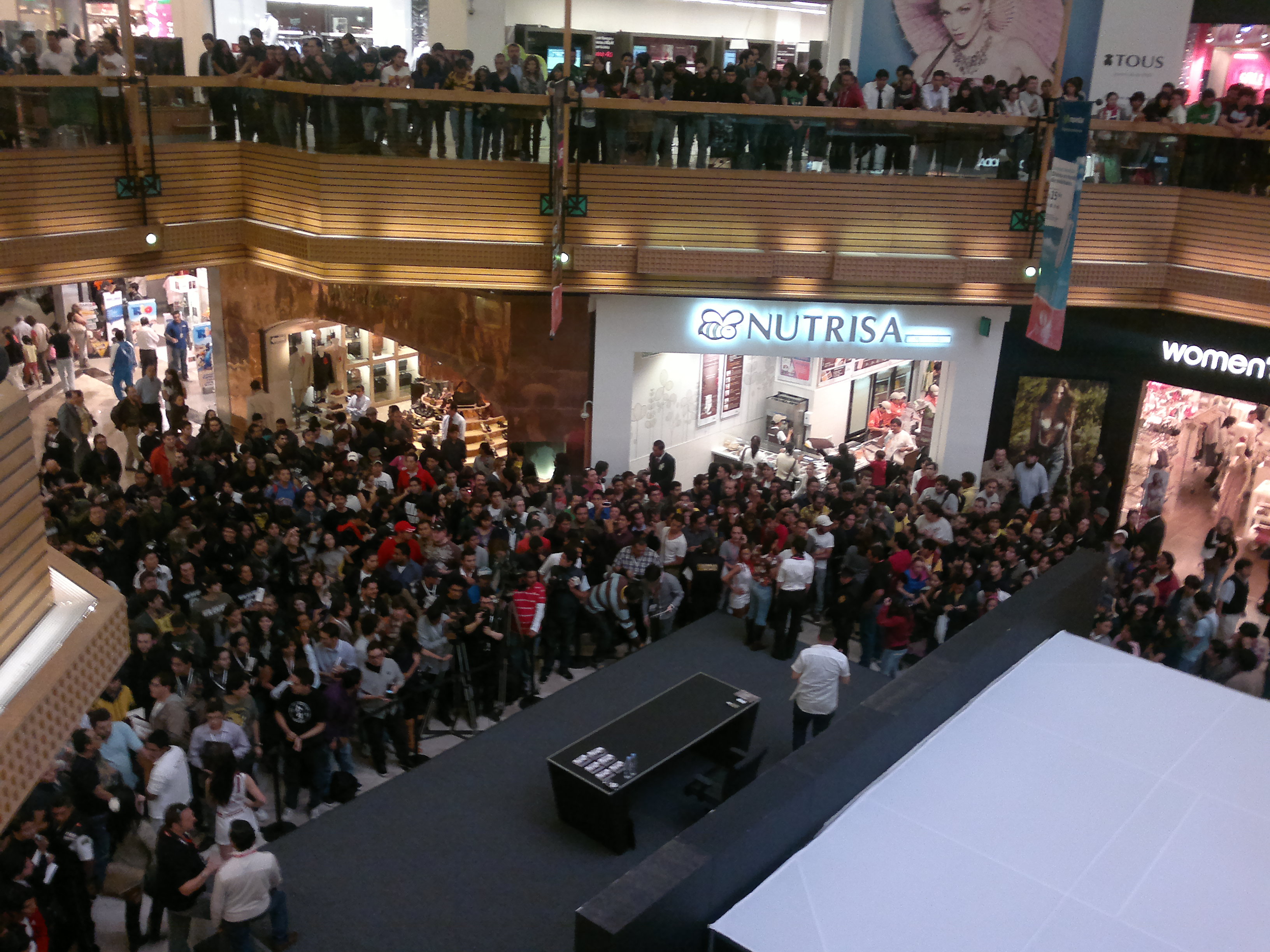 The stage, there is not that much people since everyone was in line outside the venue. These are just the first that arrived and the curious that were at the mall: