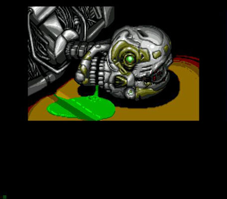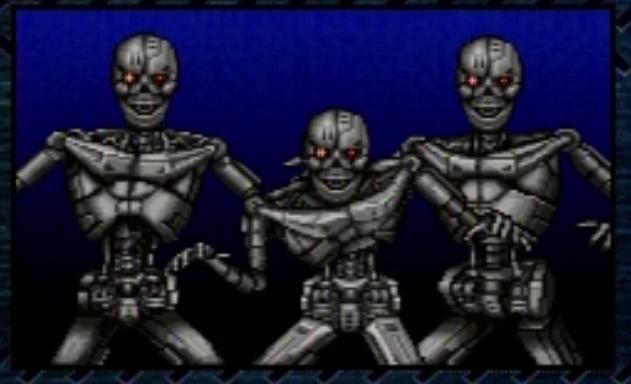 Then we have the English Sega CD version where they decided that the SNatcher design was too derivitive of the Terminator Endoskeleton design and added green panels to various sections and made the eyes glow GREEN.