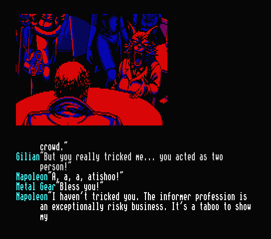 Some of the MSX version I notice requires a bit more exploration to progress. I did everything required to get past a certain part in the Sega CD and Gibson didn't call. So I then proceeded to harrass Harry. Also, when you go to give Harry Little John's memory, he can offer you to drink booze and Gillian can get drunk! XD
