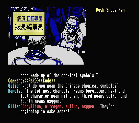 Apparently I was right. You have to show the Memo to Harry, and he then suggests asking a chinaman about it, and Gillian remembers that Napolean is Chinese. Anyway, thus marks the VALIANT RETURN OF ME! Also be sure to check out the Youtube channel me and my friends share. After playing through Earthbound and Mother 3 I plan to do a playthrough of Snatcher (Sega CD version)!