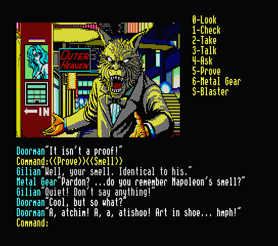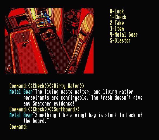 On today's issue of MSX Snatcher shots, I deal with an LSD junkie and combat a couple. They all deserved it, I swear! Just as a warning, this part includes NUDITY! More than likely, however, this will actually make people WANT to look, but whatever.