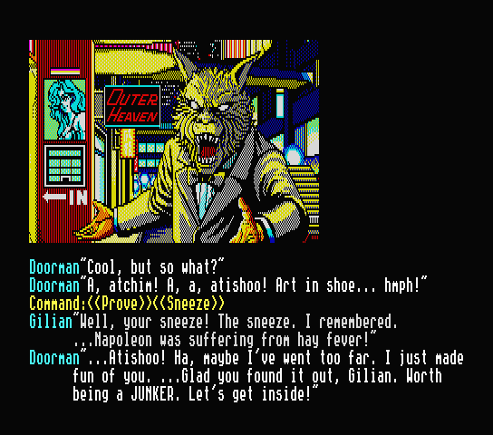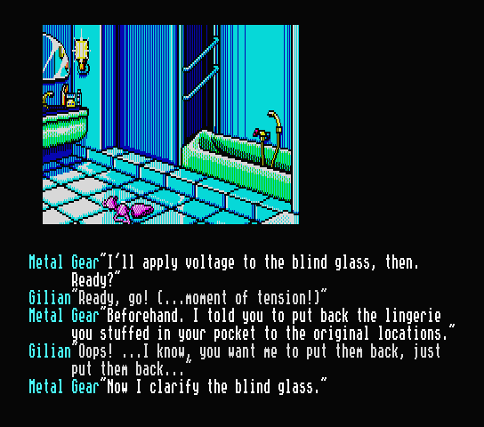 Some of the MSX version I notice requires a bit more exploration to progress. I did everything required to get past a certain part in the Sega CD and Gibson didn't call. So I then proceeded to harrass Harry. Also, when you go to give Harry Little John's memory, he can offer you to drink booze and Gillian can get drunk! XD