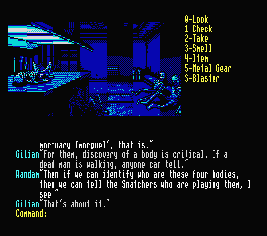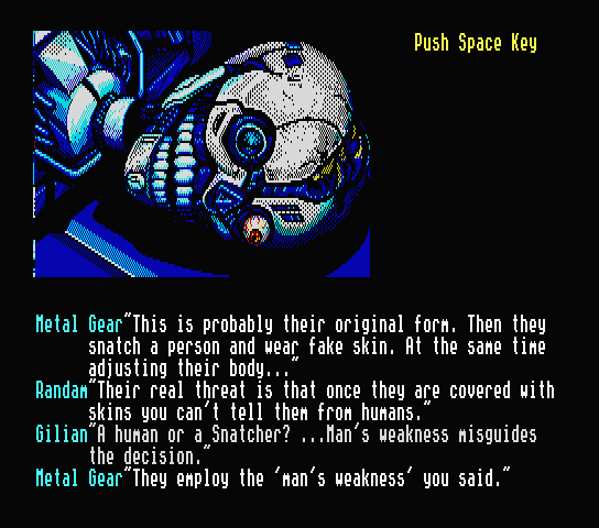 Enough of this crap, time for more Snatcher pictures, now with more dialogue and blue~!