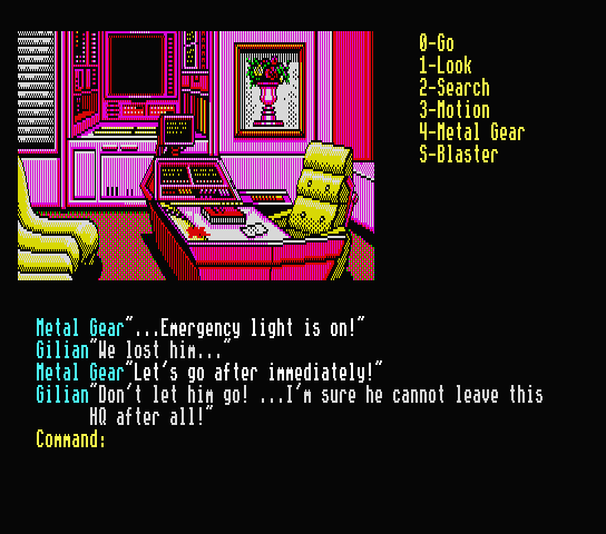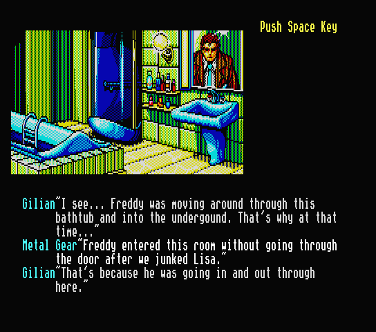 5. The MSX version has the grammar that goes all over the place from Decent english, to some that are oddly phrased, to just sloppy at points ("I've located a possibly Snatcher Man!" and one recurring line of text is in Portuguese, which lead to my initial belief that the translator was originally Portuguese, though according to Artemio that's false). Aside from at least one point where the game claims that Jamie is saying something that I'm pretty sure Gillian is saying, the Sega CD localization is very well done.