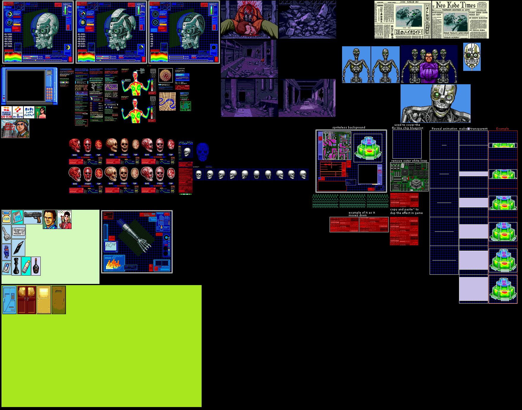 Just came across this during a search, glad you like. Sadly I am not ripping snatcher sprites anymore since I've gotten involved in a few other things I may start ripping again but I posted these on tsr so if any other ripper wanted to rip the games they could use mine to save them some time. It was fun trying to figure out exactly how large each tile was for damage in sd snatcher comparing them to screenshots so that one is pretty accurate.