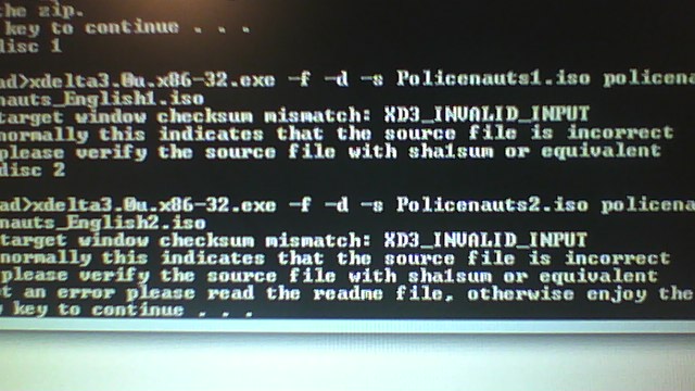 I have followed the guide but when I click on the patch file or the patch-athlon-cpu to patch policenauts. I got an error saying the "xdelta3-3.0.8.x86-32 is not recognized an internal or external command, operable program or batch file. Patching disc 2" I did rip both discs into ISO format and put them in the patch folder after I did extract the patch. Thanks for any help.
