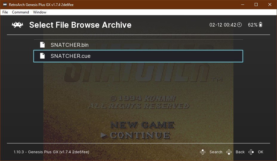 It still baffles me what might've been causing the issue with Retorarch, since it booted up disks 0 and 1 just fine, and so you'd think if there were anything wrong with the setup it would effect all the disks. And I've read plenty of people who managed to run MSX Snatcher through Retroarch on Windows without issue, so it doesn't seem to be anything intrinsic to Retroarch.