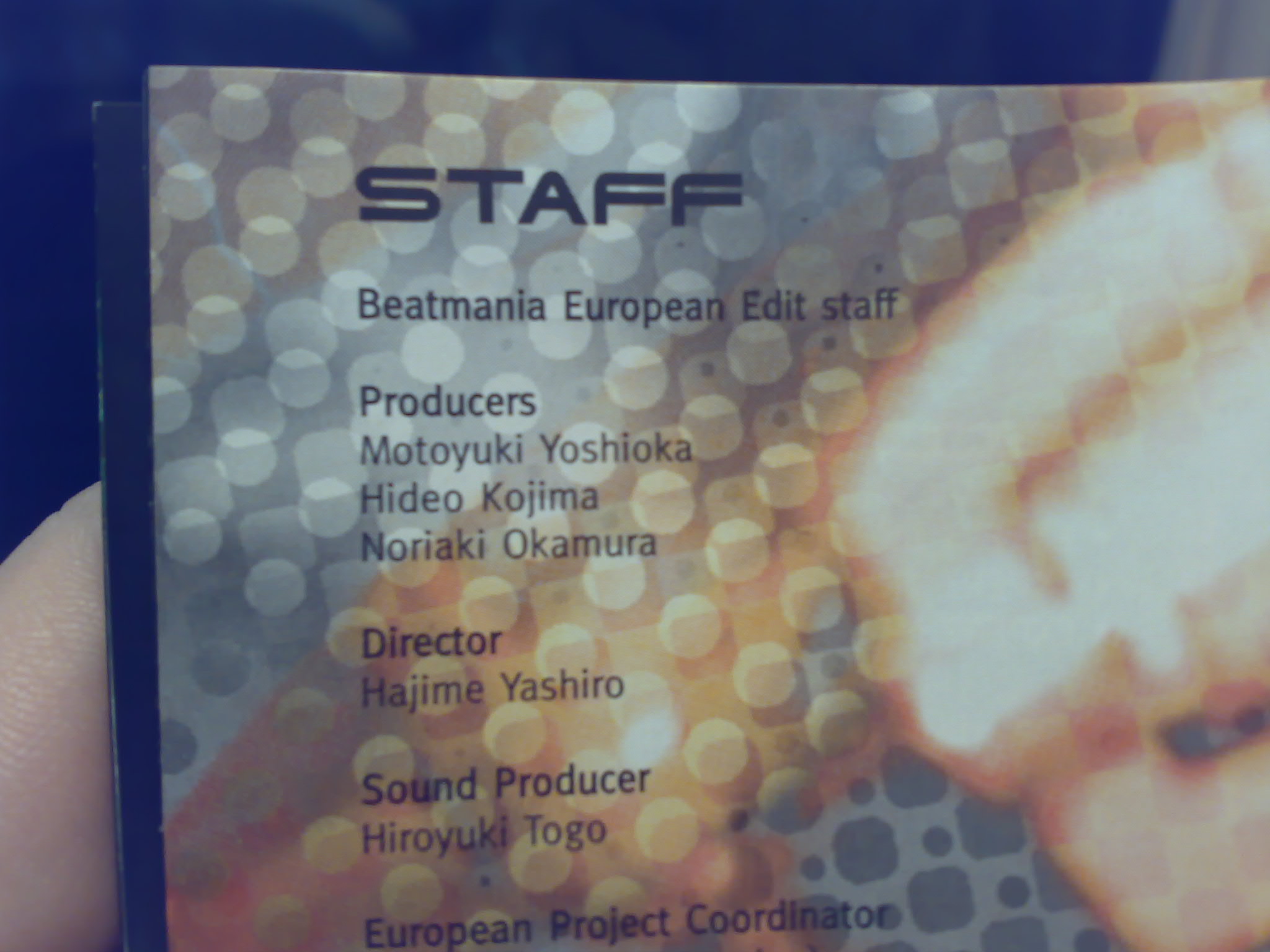One member from my Finnish Hideo Kojima forums posted this earlier, it seems that mr. Kojima has produced beatmania. I know there is MGS theme track in this game, but i never knew he is actually one of the game producers!