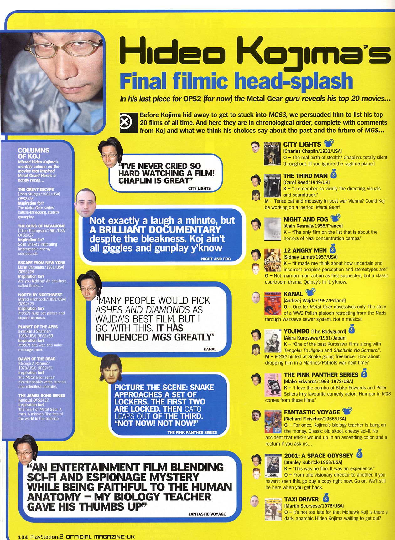 I already have. It should be going up on TUS sometime soon.Spike wrote:Sorry to bump such an old topic, but I just read the OPSM2 Hideo Kojima's favourite movies article. And, if I remember well, Osiris said OPSM2 cut down elements from the original Japanese article. I'd really appreciate if someone could translate it.