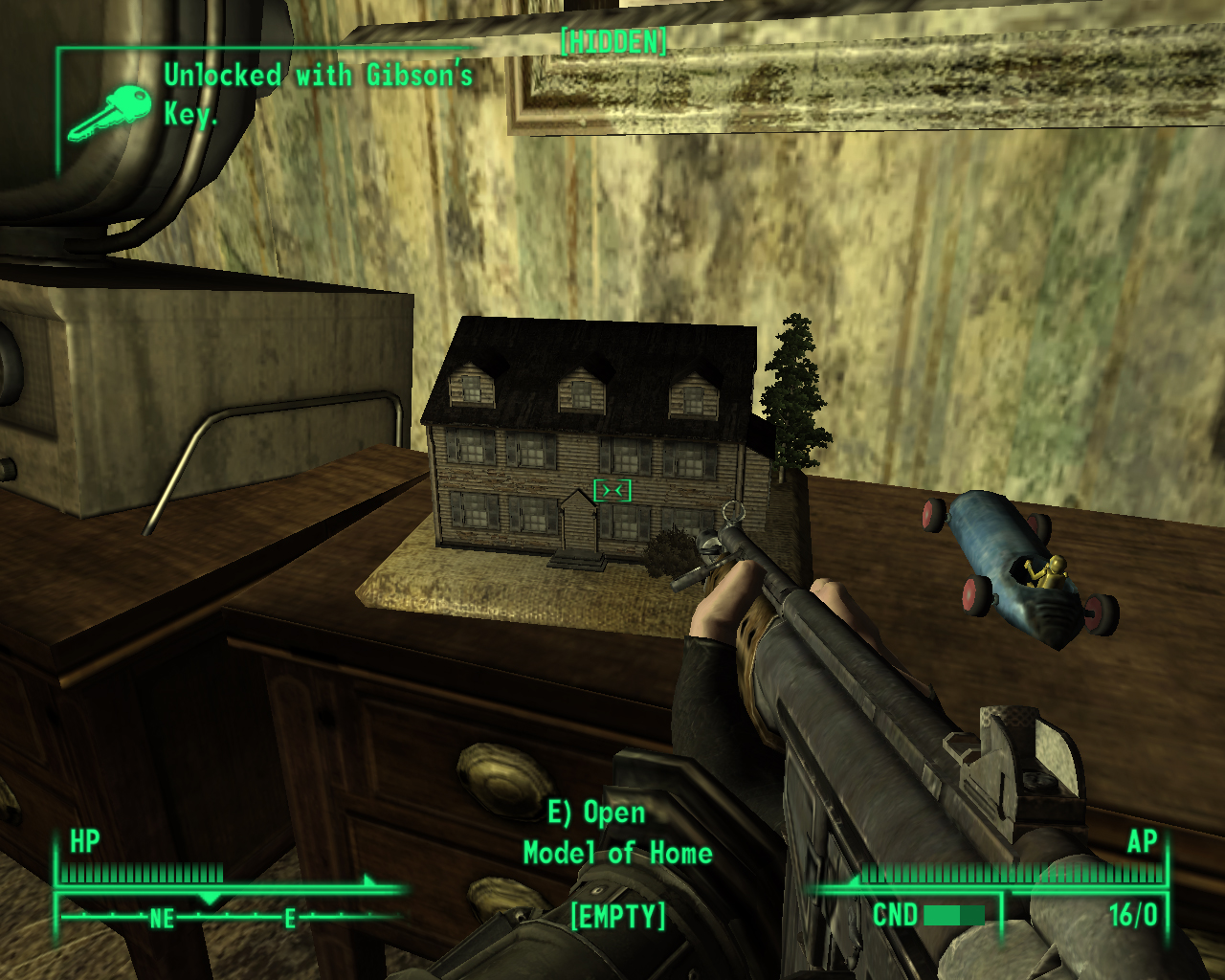 I searched all of the houses, and of course when I serched Gibson's House I was VERY surprised to find a minature model of the house inside! But i did not have the key to the model house.