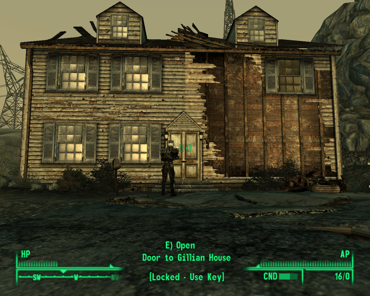 I was up last night playing the game, and i stumbled into an office building very very far from the "minefield" only to find what looked exactly like "Gibson" laying dead with his head torn off! (you see alot of bodies in Fallout 3) ...and to my surprise it WAS Gibson! so i searched him, and found on him a KEY and a PEICE OF PAPER that read : SEARCH THE HOUSE!