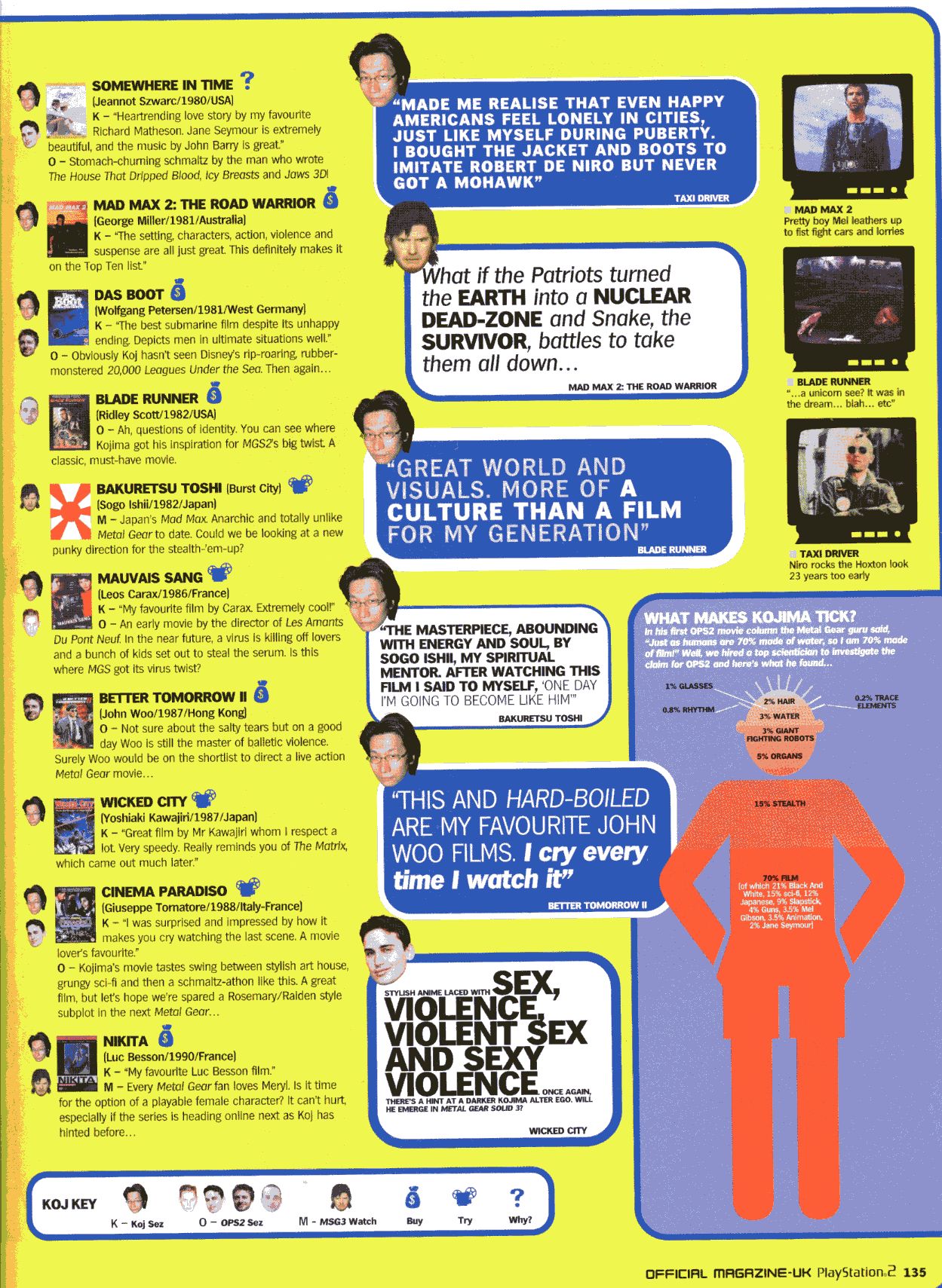 I got a big sense of that from the article. Basically, I ended up skipping anything without Kojima's head beside it.Jonathan Ingram wrote:Now that is depressing.Some Twat from OPS2 wrote:Blade Runner - Ah, questions of identity. You can see where Kojima got his inspiration for MGS2's big twist. A classic, must-have movie.