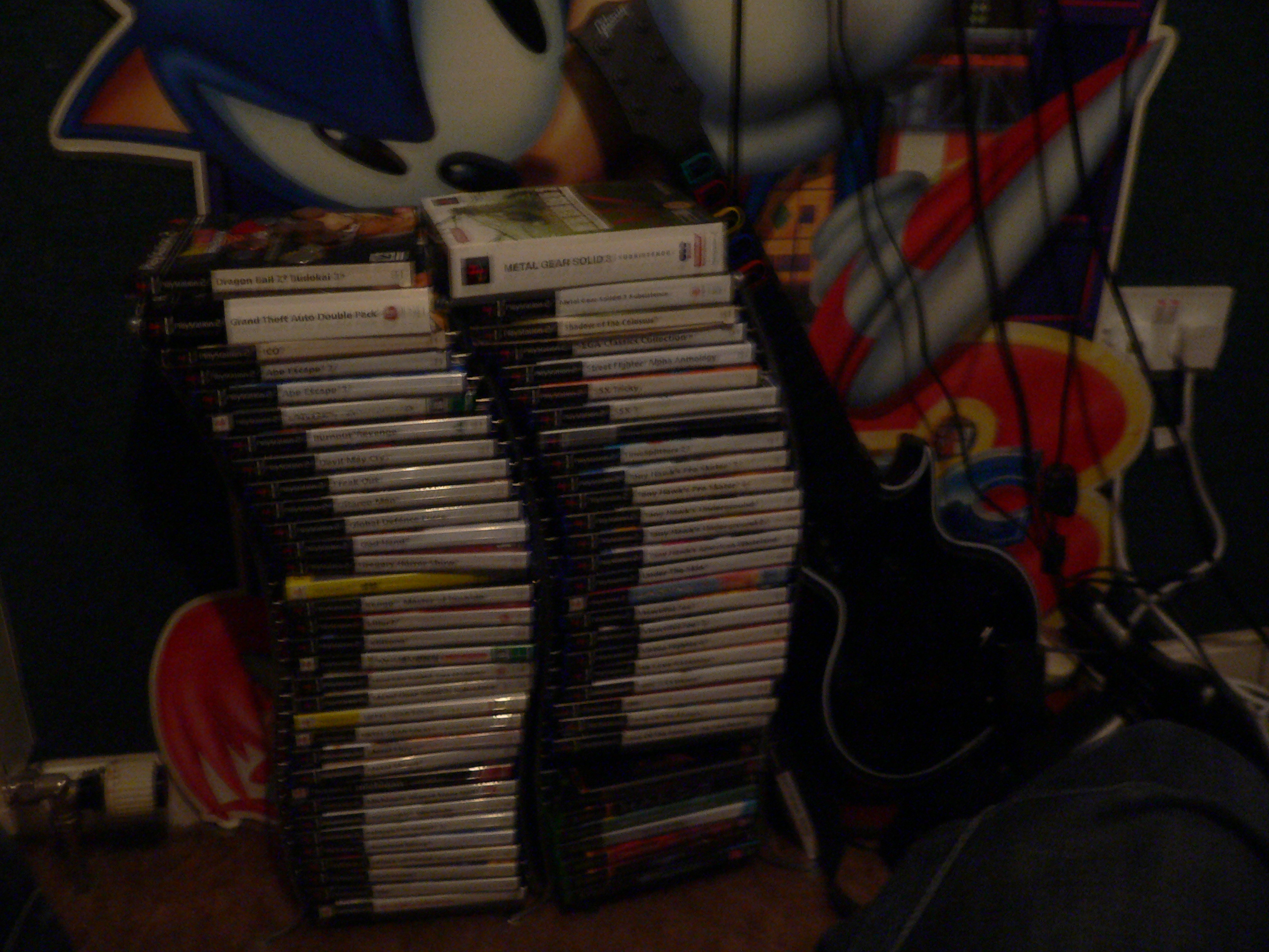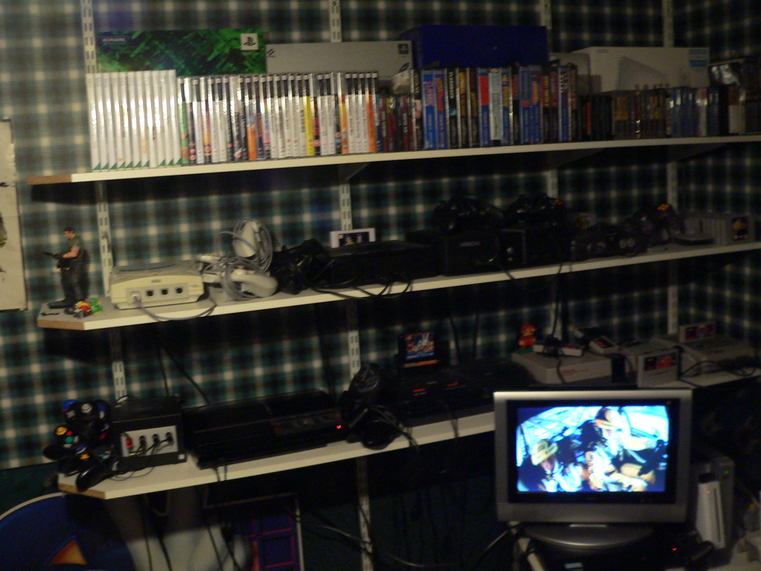 Just got given my dad's old camera since he won a new one. Thought I'd use it to take some pictures of my set-up. A lot of my PS2 games are missing, but it still looks like a decent collection. My MSX2's power supply blew recently, so it's not in the picture, but I'm planning to replace it with a 1chipMSX sometime. My handhelds (PSP, DS Lite, GBA, GBC, GBP, GB, Game Gear, GP2X) are all elsewhere, too.