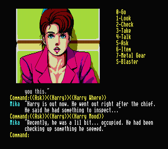 5. The MSX version has the grammar that goes all over the place from Decent english, to some that are oddly phrased, to just sloppy at points ("I've located a possibly Snatcher Man!" and one recurring line of text is in Portuguese, which lead to my initial belief that the translator was originally Portuguese, though according to Artemio that's false). Aside from at least one point where the game claims that Jamie is saying something that I'm pretty sure Gillian is saying, the Sega CD localization is very well done.